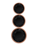 These sleek & stylish metal plugs offer sexy nonporous playtime for all! This set is a must-have with multiple sizes for a truly erotic experience. Petite, medium & large plugs alike feature bulbous, shiny shafts with incremental bulbs that look shapely and feel even better. Warm or cool the metal with water for sexy sensation play and find out how these little sculptures can enhance your pleasure! The chic black gem at the base of each plug lets you play in style!