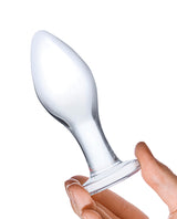 Explore anal play with the unique sensation of glass. This 4” Classic Butt Plug features a beginners-friendly size and familiar shape for fans of all levels of anal play. Its flared base makes it safe to use and easy to insert and remove.