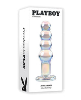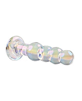 Introducing the Jewels collection, destined to be a favorite in your sex toy drawer. Adorn your body with pleasure and the Jewels Beads. This petite beaded shaft features four round bulbs graduating in size from the smallest at the tip to the largest at the bottom, followed by a flared safety base that features the Rabbit Head Design. Made of body-safe borosilicate glass, these Anal Beads shimmer with a crystal iridescent finish as you play. Enjoy temperature play by immersing the toy in warm or cool water before use. Five Year Warranty.