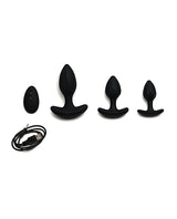 Take your training to the next level with MotoVibe's Plug N Play set. Included in this kit are two non-vibrating plugs and one remote controlled vibrating plug, each bigger than the one before it. With 10 different vibration modes, the water resistant rechargable plug will keep you entertained all night long.