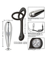 Blast off to a universe of personalized pleasure with the Star Fucker? Glider Plug. A stretchy, silicone dual enhancer is paired with a sleek, seamless metal probe for versatile support, enhancement, and even tantalizing temperature play. The supple silicone dual enhancer was created to increase stamina, improve sensitivity and deliver superior erection support. Get playful by using the dual enhancer and metallic probe together, and don't forget they can be disassembled for easy cleaning. The flexible probe is made from a smooth, seamless aluminum alloy that retains heat or cold for a one-of-a-kind temperature play experience. While you expand your horizons with the sleek bulbous plug, use the sparkling gem adorned base for steamy stimulation, effortless insertion and gentle removal. The view gets even better from behind with the sparkling gem base.