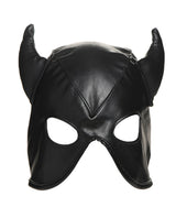Step into a commanding fetish aesthetic with the Master Series Dungeon Demon Bondage Hood with Horns. Designed for BDSM roleplay, fetish wear, and costume use, this bold hood delivers striking visual impact while prioritizing comfort and wearability. Made from premium PU faux leather, it provides a sleek, dominant look and is fully vegan friendly.