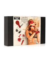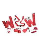 Elevate your intimate moments with the Lover's Bondage Massage Set, a luxurious collection of sensual items designed to ignite passion and enhance connection. Crafted for ultimate comfort and pleasure, this set includes everything you need to surprise your partner with a tantalizing experience. The Lover's Bondage Massage Set features a satin blindfold, satin paddle, two satin restraints, a premium silicone ball gag, silicone butt plug, vibrating silicone C-ring, vibrating bullet, feather tickler, massage candle, and a 1.7 oz bottle of massage oil.