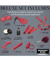 - Complete Bondage Kit: Includes everything for an elevated experience – satin restraints, blindfold, ball gag, tickler, massage candle, and more.