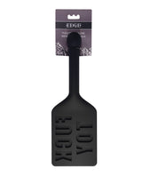 Leave your mark with the Edge Silicone Paddle, a bold, 100% silicone paddle designed to make an unforgettable statement. Imprinted with the provocative word "FUCK TOY," this paddle stamps your plaything with an unmistakable mark after each strike, heightening your power dynamic and turning up the intensity of your session. The flexible paddle head moves fluidly with every swing, delivering the perfect balance of sensation—from a gentle tease to a more forceful impact. The metal-reinforced handle provides a satisfying weight, offering precision and control in every strike. For an added twist, the sturdy handle is also insertable, providing even more options for creative and versatile play. Whether you're administering discipline or indulging in teasing, the Edge Silicone Paddle guarantees a session that will leave a lasting impression.