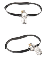 Punish your subject's misbehaved member with The Prisoner steel cock cage chastity belt. Made from highly-polished steel and secured with lock and key, this shiny chrome chastity cage will keep your sub's cock behind bars until you decide to set it free. Dare your subject to get a hard-on and watch as they struggle inside the prison-like confines of the cage. No matter how aroused he gets, the curved steel shape prevents your sub from getting erect, but the open design still allows them the freedom to piss when they need to. You hold the key to pleasure, so make sure they do as you say before you grant them their freedom. The designer alligator-style waist strap easily adjusts to fit most sizes and feels great against your skin. Make sure your subject is flaccid before trying to fit his cock into the cage and use plenty of Moist® lubricant to make insertion easy and painless. Attach a leash to the waist strap and explore all your master-and-slave role-playing fuck fantasies!