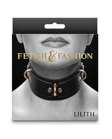 Fetish & Fashion's Lilith Collar is ideal for both Doms and Subs. Designed for neck sizes from 11.5 to 16 inches and embellished with luxe red lining, Lilith features an adjustable buckle closure and 3 D-rings for maximum restraint. Crafted from man-made materials (PU) and nickel-free hardware. Leash sold separately.