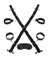 The Saint Andrew's Cross is a common piece of equipment that's often found in BDSM dungeons ... and you can now bring home with you! The Over the Door Cross is designed to work just like the classic, kinky positioning gear but with the added benefits that allows for versatility and convenience of use. The cross is completely adjustable to fit most internal household doors and suit users of all heights. Its cuffs are detachable and come with adjustable fastenings that offer a secure and comfortable fit. The cross' multiple D-rings allow for a variety of positions.