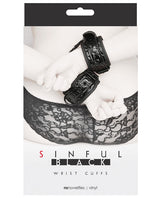 Sinful has been THE name in affordable playful kink in pink. Now, Sinful just made sexy a little bit sexier. NS Novelties is excited to introduce Sinful: Black. Everyone's favorite collection is now available in a stunning midnight black finish while continuing to deliver the quality you expect. Black, nickel-free anodized hardware, aesthetically striking embossed vinyl, and lined in soft yet durable liquid-play friendly neoprene. This sexually neutral collection includes: fully adjustable wrist cuffs, ankle cuffs and collar & leash featuring quick release hardware, playful vinyl and leather soft bite whip, a full sized paddle with a wrist or hang loop, a comfortable elastic blindfold, and an adjustable breathable ball gag.