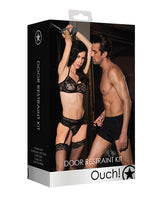 Easily attach to any door to enjoy some bondage fun. Just place the 2 acrylic tubes over the top of any open door, place the other 2 under the bottom, close (and lock for safety) the door. Bind your partner and enjoy. Comes with 4 adjustable tethers, 2 velvet wrist and 2 ankle cuffs, 4 acrylic door jam tubes and a satin eye mask.