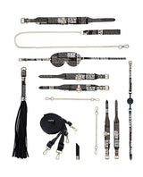 The New York Collection Kit by Ouch! comes in a gorgeous handbag, with a high end iridescent look on its hardware, and it includes a collar and leash, a set of handcuffs, and set of ankle cuffs, a blindfold, a breathable ball gag, a flogger, an under the mattress restraint, and a rechargeable vibrating bullet. The perfect kit to satisfy even the most advanced bondage lovers. All Shots toys come with a 1-year warranty.