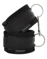 Linked together handcuff style, or connected to your favorite Sportsheets® restraint system, these cuffs are lined with ultra soft material to keep those tender wrists and ankles safe, yet securely latched in the heat of the moment. Tough on the outside, smooth on the inside, these restraints feature easy-off hook and loop closures, constructed of durable metal that's sure to keep a tight lock on every naughty situation you dream up.