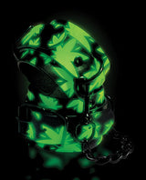 Stoner Vibes Wrist Cuffs are lightweight and adjustable. A fun glow-in-the-dark cannabis design is accented with black metal hardware and buckle fasteners for the ideal fit. The cuffs link together with D-rings, a 5 inch chain and lobster claw clip for full wrist restraint. Buckle-closure cuffs are adjustable from a 6 - 10 inch inner diameter, and are a fun addition to your BDSM play. Use them independently or with our fully interchangeable bondage gear companion products from the Stoner Vibes Chronic Collection.
