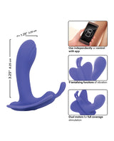 Step into a world of unparalleled pleasure with the CalExotics Connect™ Venus Butterfly®, a dual-motor stimulator crafted for the ultimate experience in stimulation. Offering full coverage and deeply satisfying sensations, this versatile stimulator is perfect for solo exploration or as an exciting addition to couple's play. The Venus Butterfly® can be used independently or controlled via an intuitive app, allowing you and your partner to take control of your pleasure from anywhere. With 9 dynamic functions of vibration, pulsation, and escalation, it provides a customized and thrilling experience to suit your desires. The body-safe silicone material ensures comfort and safety, while the 100% waterproof design opens up endless possibilities for fun. The memory chip resumes the last used function, and the security travel lock ensures discretion when you're on the go. USB rechargeable and ready for play in just 2 hours, the CalExotics Connect™ Venus Butterfly® is your gateway to an extraordinary pleasure journey.