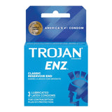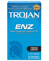 Trust the superior quality of Trojan condoms for secure and satisfying intimate experiences. The Trojan-Enz condom is crafted from premium latex and features a classic design with a lubricated finish and a reservoir tip for added protection. Its water-soluble, jelly-like lubricant enhances comfort and sensitivity, ensuring mutual pleasure with every use. Available in packs of 3 or 12, Trojan-Enz condoms deliver the reliability and performance you can count on.