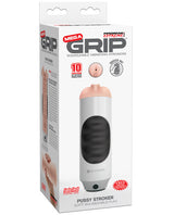Get The Perfect Squeeze Every Time! Get a grip on your next stroking session with this incredible squeeze- able stroker! Experience the tightest, softest, most realistic masturbator on the market with the Mega Grip Squeezable Vibrating Stroker. Made from our ultra-lifelike Fanta Flesh and encased in sturdy ABS plastic, this vibrating stroker features a soft TPU midsection that allows you to squeeze the textured sleeve and precisely control the pressure. Press the button on the powerful motor and enjoy 10 patterns of tingly vibrations that travel all the way up your shaft. Slide into the super-soft Fanta Flesh insert and enjoy intense stimulation, lifelike sensations, and explosive climaxes. The tunnel of the realistic sleeve is lined with canals, ribs, and tiny love nodules that tease and surround your cock with each stroke. The super-soft Fanta Flesh is velvety smooth on the inside, wraps around you like a second skin, and warms to your body heat. Best of all, the removable Fanta Flesh sleeve doubles as a handheld stroker for incredible non- vibrating thrills.