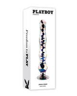 Introducing the Jewels collection, destined to be a favorite in your sex toy drawer. The Jewels Wand features a narrow, tapered tip with three graduated beads along the shaft that become rounder and more stimulating as they grow. Made of body-safe borosilicate glass, this magic maker will cast a spell on you as it shimmers with a crystal iridescent finish and a dark interior spiral, ending in a flared safety base that features the Rabbit Head Design. Enjoy temperature play by immersing the toy in warm or cool water before use. Five Year Warranty.