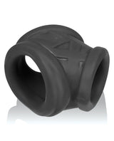 Oxsling is everything you love about our original cocksling designs but it's made from our brand new PLUS+SILICONE(TM) composition. Our PLUS+SILICONE(TM) combines the strength and stretch of TPR with the warmth and softness of smooth silicone; guarantee your junk has never felt anything like it. Each opening on OXSLING is reinforced with a thick ring that grips your meat and pushes your nuts down and away from your body. The super soft material and multi-ring design create the sensation of a hand gently squeezing your shaft and sack. OXSLING's versatile shape can be worn multiple ways for a different fit and feel. Wear the smaller ring facing downward for a tighter fit on your ballbag or flip it towards your body for more pressure on your cock or shaft. Color: Black Ice Material: PLUS+SILICONE(TM) TPR/Silicone blend Stats (Approximate): Width: 2"/ 5.08 cm Height: 2.25"/ 5.72 cm Main hole circumference: 4"/ 10.16 cm Shaft hole circumference: 3.5"/ 8.89 cm Ball hole circumference: 4.25"/ 10.80 cm