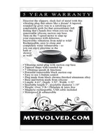 Explore new sensations with the Evolved Beginner Vibrating Metal Plug. Its sleek, tapered shape with a rounded tip ensures smooth and easy insertion, while the comfortable girth delivers a satisfying full feeling. The plug is designed with a powerful 2-sided silicone suction cup base, allowing for hands-free use and ensuring it stays firmly in place. Activate the 7-speed motor to enjoy vibrations ranging from gentle to intense, providing a variety of sensations for your pleasure.