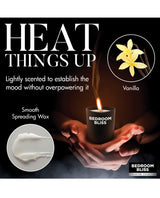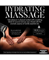 Transform your intimate moments with the Lover's Vanilla Scented Massage Candle by Bedroom Bliss. This unique candle, crafted from a blend of coconut and soy wax, delivers a soft, soothing experience perfect for massage and temperature play. As it melts, the candle releases a light vanilla aroma, creating a warm, inviting ambiance that heightens relaxation and intimacy. With its low melting point, the wax drips gently onto the skin, cooling quickly to ensure a safe and pleasurable experience.