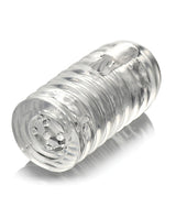 The ribbed interior tunnel, lined with rows of gripping ribs and bumpy textures, provides deep stimulation as you slide inside. The open-tip design allows for easy cleanup, letting fluids flow through effortlessly. For thorough maintenance, simply turn the sleeve inside out, rinse with warm water and mild soap, and apply a toy cleaner before air drying.