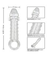 Boost your bedroom performance with the Ultimate Stud Extender. Designed for mutual satisfaction, this powerful male enhancer adds 2 inches of length, increases girth, and features a thrilling studded texture that leaves your partner begging for more. The built-in scrotum strap provides added erection support, boosting stamina and prolonging pleasure. Crafted from super stretchy, unscented, and phthalate-free TPE, it’s made to fit any size and ensure a snug, comfortable experience. Enjoy the easy cleanup and long-lasting durability of this body-safe material. Simply wash with soap and water after each use.