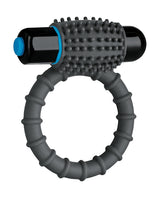This powerful Vibrating C-Ring is made for pleasuring you and your partner- featuring a textured yet soft, stretchable silicone ring for easy use and a removable bullet in a nubby sleeve for comfortable stimulation. The push-button waterproof bullet offers 10 unique functions. Wear the ring atop the shaft for targeted clitoral stimulation or under the shaft or testicles for self-stimulation. Phthalate free. Batteries included. From Doc Johnson.