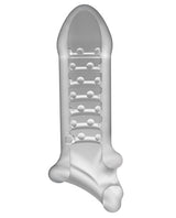 Sometimes you just want a little more. Slide into the OptiMALE(TM) Thick Extender with Ball Strap for increased length and thickness. Soft and stretchy to perfectly hug your shaft, this majorly size-boosting sleeve stretches six inches from its ball-teasing base to a firm head in a sheer, frosted material that looks and feels incredible. The extender's ribbed, studded interior stimulates the penis, while the attached ball strap holds it in place and tugs at the balls for added pleasure with every thrust. Material TPE Color Frost Total Length 6 (in) / 15.24 (cm) Width/Diameter 2 (in) / 5.08 (cm) Circumference 6 (in) / 15.24 (cm)