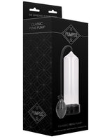 Clinical studies have proven that vacuum erection devices will give instantly harder erections, cause temporary flacid enlargement and can increase permanent penis augmentation. According to the American Urological Association, these devices may also be useful in cases where such PDE5 drugs as Viagra have failed to work! Doctors view the penis pump as a safe, effectual and cost effective treatment for erectile dysfunction and state that the prolonged use of these devices will enhance the size of the penis permanently. Other advantages of the PUMPED selection are, amongst others, delayed ejaculation, improvement of sexual appetite, boosting of testosterone, the maintenance of longer and harder erections and the supporting of penile tissue after prostate surgery. PUMPED, for instant results! With a total cylinder length of 23cm (9") and a diameter of 6cm (2.35"), this high-quality pump gives you ample possibilities to grow in both directions! The total length of the hose is 25cm (10") and the insertion sleeve is made of smooth Silicone. Surprise yourself every time on how big you can get! This variant comes with a comfortable handheld pump and a quick release valve for your comfort! From SHots America.