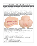 Experience the ultimate double fantasy with the Zero Tolerance Dani Daniels Realistic Ass & Vagina Stroker. Designed for front and backdoor pleasure, this life-like dual-entry stroker features realistic vaginal and anal canals for an ultra-tight, authentic feel. Made from soft, stretchy TPE rubber, it moves naturally with your body as you thrust. The built-in hip handles provide a secure grip, while the open-ended design allows for easy cleaning. Complete with a free Dani Daniels movie download and a ZT lube foil pack, this waterproof stroker is perfect for an immersive pleasure experience.