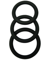 • Set of 3 ergonomic cock rings in black