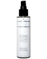 Keep your pleasure products clean and your body safe! Think Clean Thought is a quick and simple-to-use anti-bacterial cleaning spray that contains active anti-microbial ingredients proven to kill 99.9% of all germs, and it is mild enough to not cause irritation to delicate tissue. Not intended as a personal moisturizer (do not use internally.) No parabens, petrochemicals, or glycerine. 4.2oz.