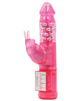 My First Jack Rabbit, from Cal Exotic Novelties, was designed with the first time user in mind. Simple, easy-to-use Jack Rabbit. Soft supple head. Flickering bunny ears. 2 speeds of independent vibration. Independent, reversible rotation. Non-jamming synchronized rotating beads. Easy push button controls. EZ load battery pack. TPE (vibrator) ABS (controller) ABS with Silver Plating (beads). 5" x 1.25"/12.75 cm x 3.25 cm. Requires 4 AAA Batteries.