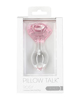 Beauty, pleasure, and luxury. With Rosy, you can have it all. A glistening glass anal toy with a tapered stem for optimal stimulation that blooms into a beautiful pink rose base. The wide base allows Rosy to sit comfortably in place. Always enjoy with a silicone or water-based lube for the highest levels of comfort and pleasure. Crafted with Borosilicate glass, this toy retains temperature, allowing you to experiment with both hot and cold for added sensations. Simply run it under hot or cold water and let your passions blossom as you discover a whole new realm of pleasure. The sleek, seamless surface is easy to clean and ideal for those with sensitive skin. Its non-porous surface is extremely hygienic so there's nowhere for bacteria to hide. Always wash well with soap and water or a toy cleaner before and after every use. Get Rosy with Pillow Talk®!