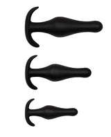 Practice really does make perfect with the Perfect Practice anal training kit. Start with Lesson One, a tapered 4" plug with convenient handles for easy insertion and removal. Designed with soft and flexible silicone, these plugs are sure to heat things up during sexy solo sessions or partnered play. Once you've mastered the first plug, graduate to Lesson Two, a 4.75" plug, and then Lesson Three, a 5.75" plug for even more penetration pleasure. Before you know it, you'll graduate from fantasy to fetish.